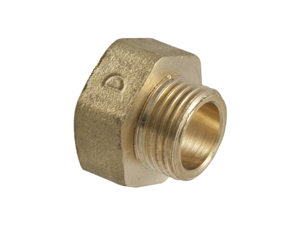 Mosazná redukce pro bezproblémový provoz CO2 ventilů Ecotechnics a tlakových lahví. Mosazné půlšroubení s plochým těsněním 1/2" x 3/4".