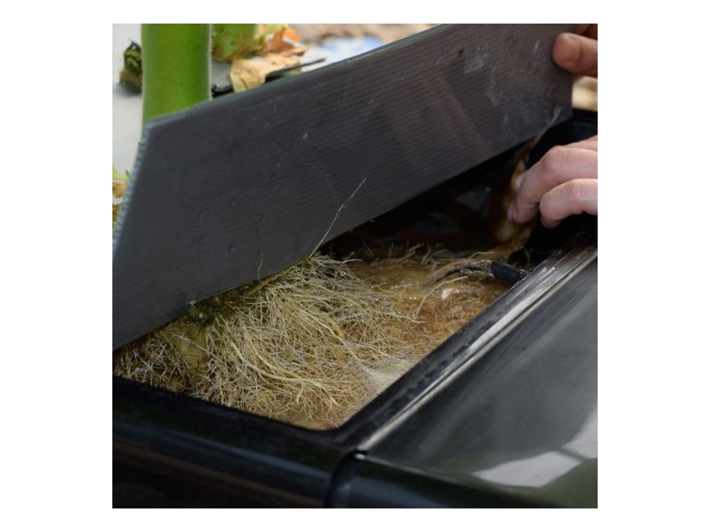 - Pomalu, ale neustále cirkulující roztok poskytuje optimální množství živin a kořenů, které si rostlina bere pomocí špiček kořínků.