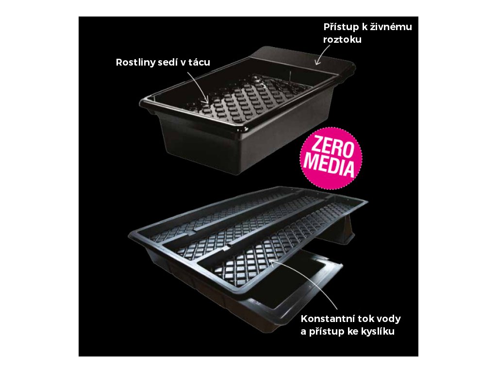 - Recirkulační závlaha je kompatibilní se všemi hnojivy na hydroponické pěstování.