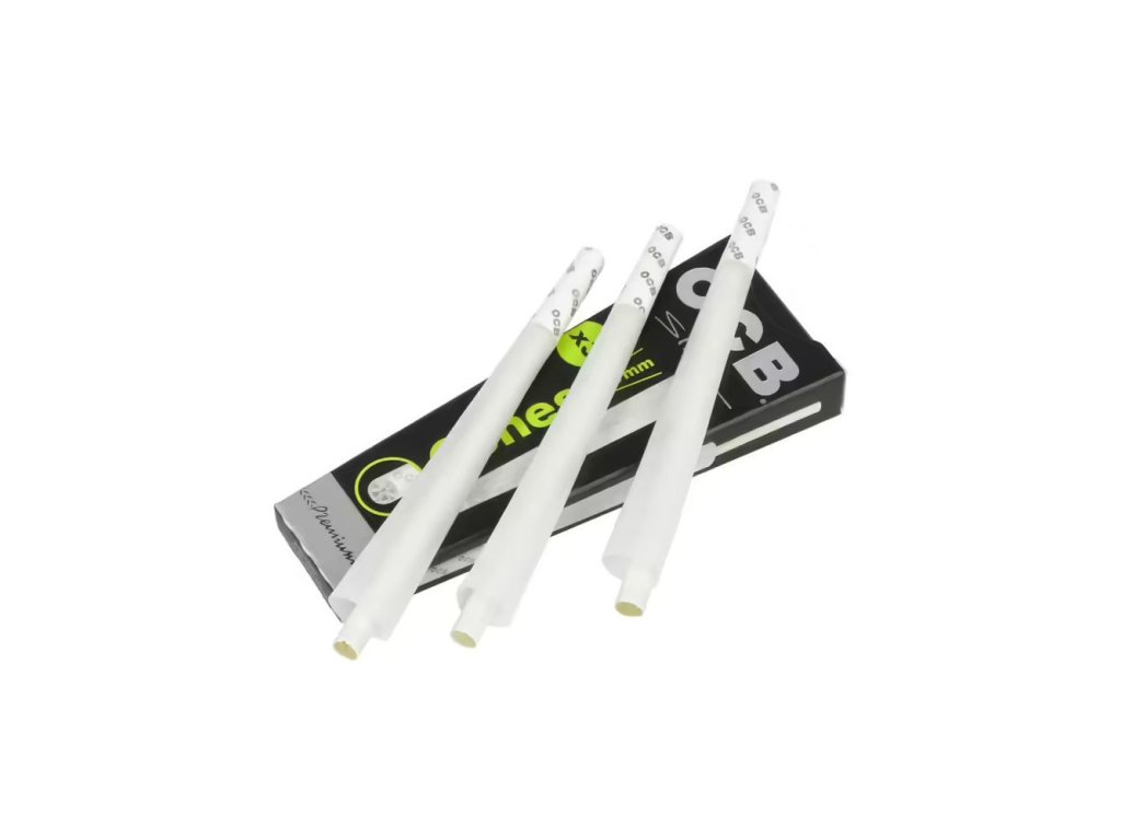 Cigaretové dutinky OCB Cones Premium Slim s filtrem a pěchovacích tyčinek jsou předbalené a připravené k okamžitému použití. V balení najdete 3 dutinky dlouhé 109 mm.