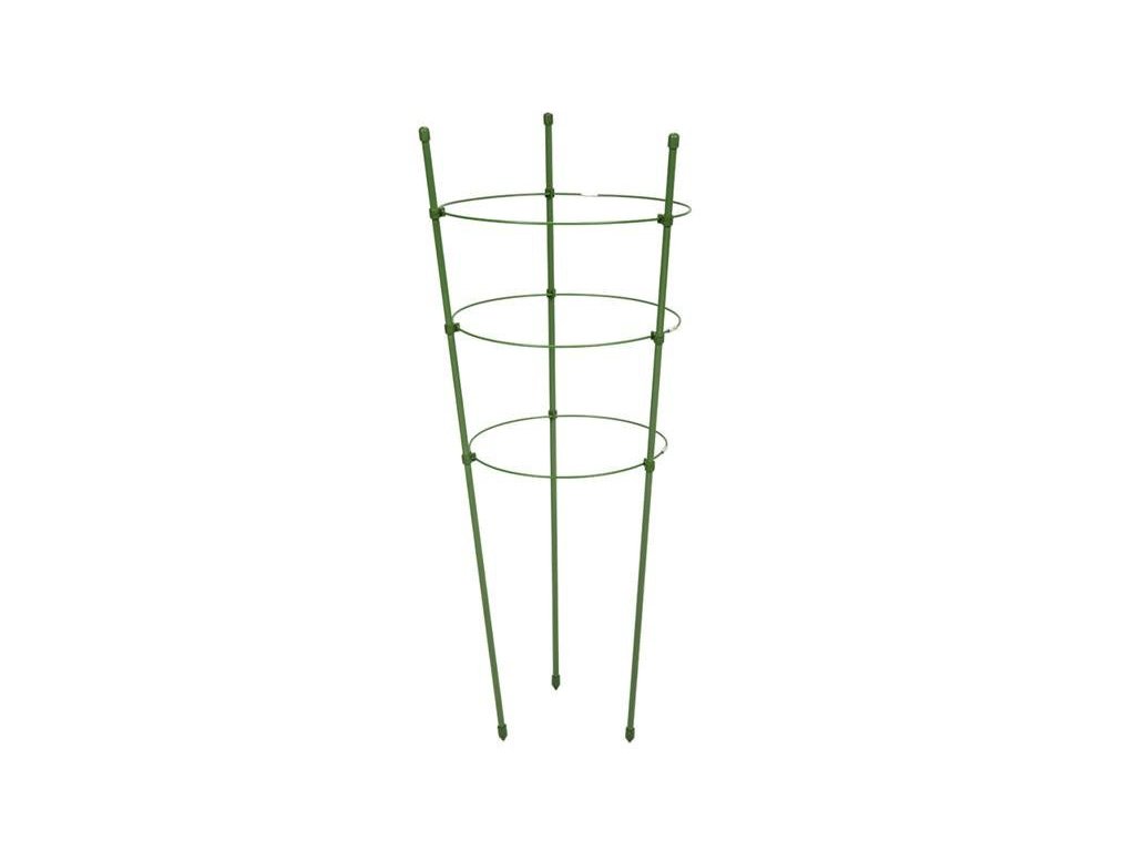 Tři tyčky a tři kulaté obruče se hodí hlavně pro pěstování venku. Opěrné kovové tyčky o délce 75 cm jsou potažené PE. Kruhová podpěra podporuje rovný a vzpřímený růst bylin a keřů.
