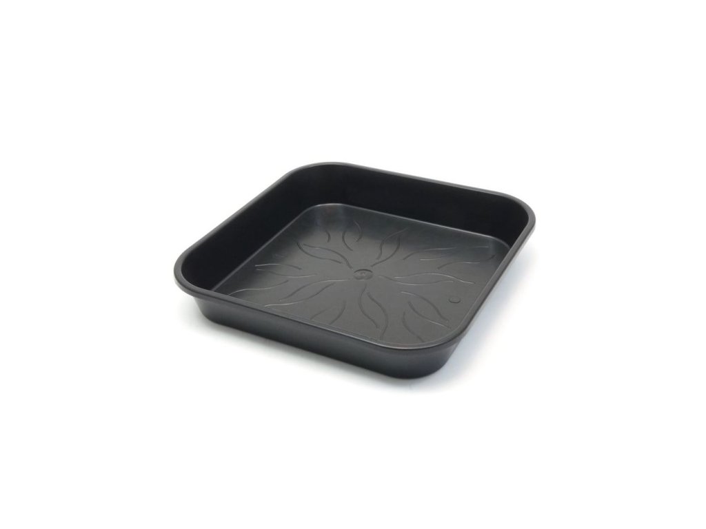 Černé plastové podmisky s rozměry 17x17 cm jsou vhodné pro menší textilní i plastové květináče s rozměry cca 10x10-15x15 cm.