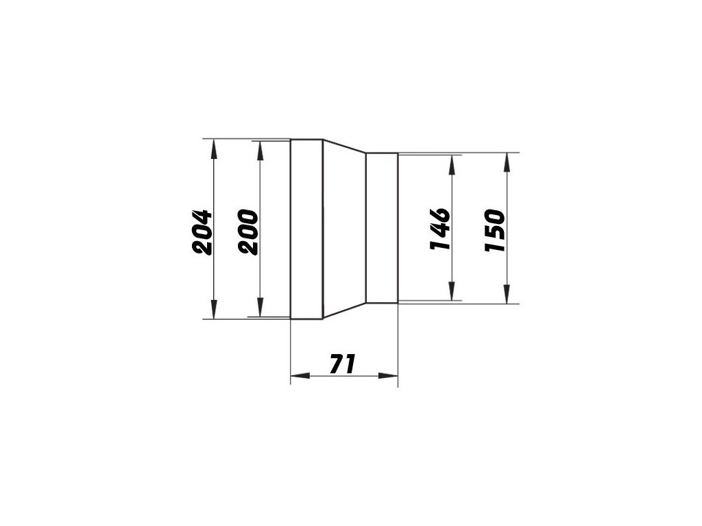 Redukce pro vzduchové potrubí 200-150 mm. Vyrobeno z PVC. Plastová přechodka slouží ke spojení ventilátorů, flexa nebo pachových filtrů s odlišnými průměry.