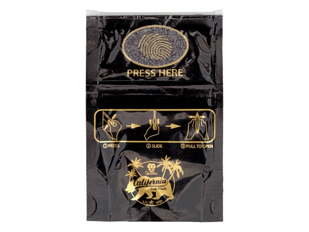 Sáček Press to Open Qnubu California chrání před vnější kontaminací i před únikem zápachu. Jednoduché otvírání Press to Open. Dvojitý zip. Kapacita 3.5 g.