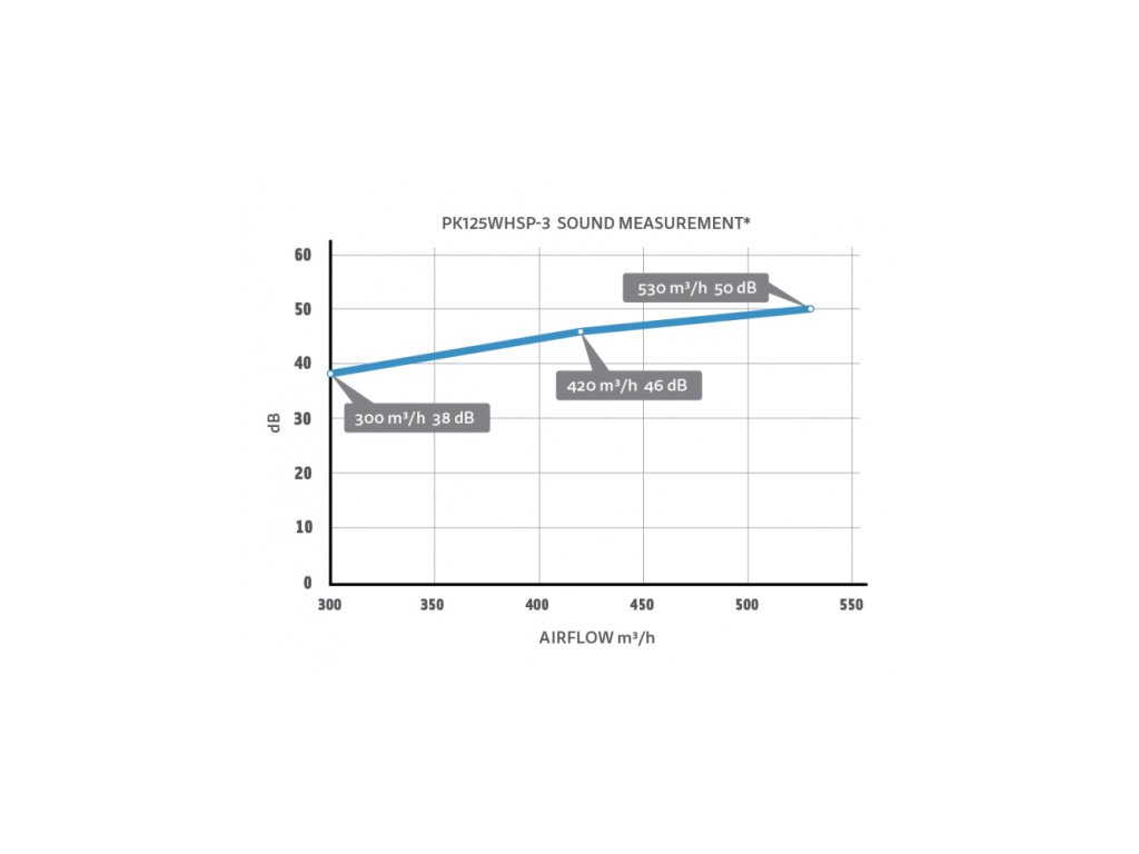 Nový třírychlostní odhlučněný ventilátor Prima Klima Silenced Whisperblower s maximálním průtokem vzduchu 530 m3/h je určen pro vzduchová potrubí o průměru 125 mm.