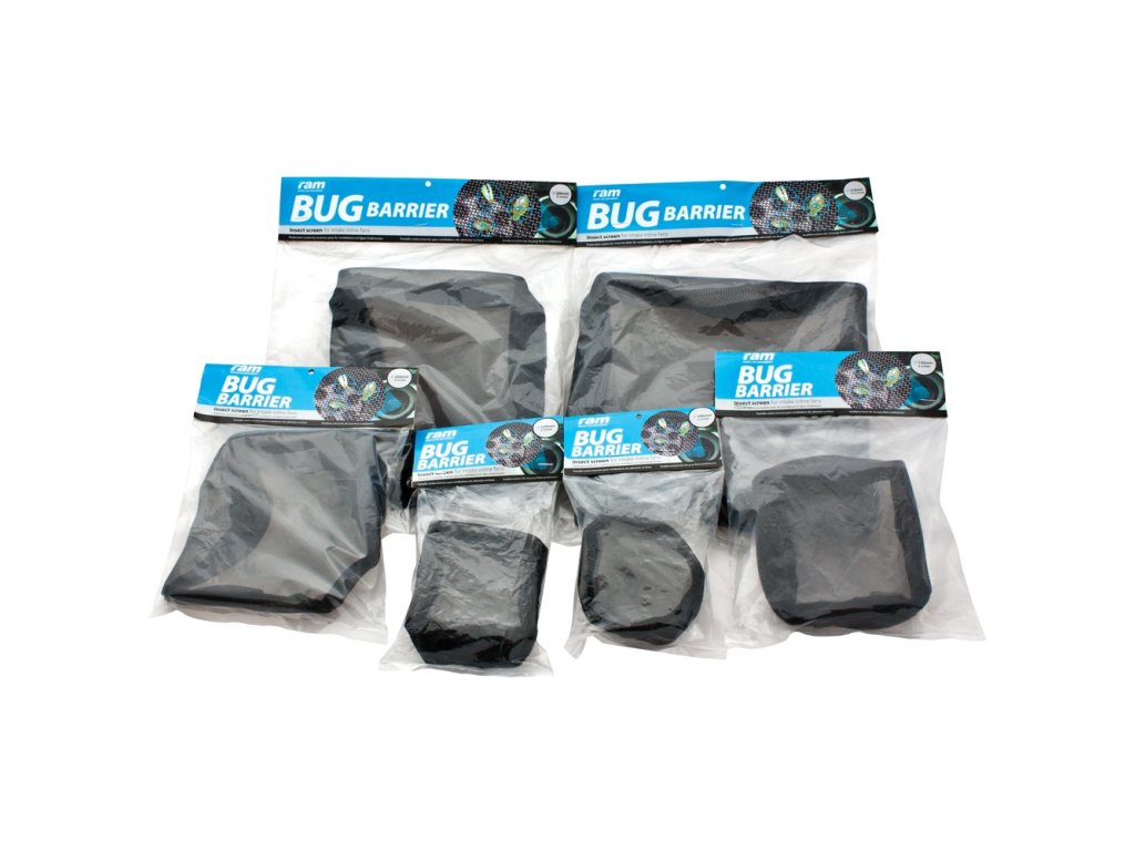 RAM Bug Barrier je jemná síť, která zabraňuje vniknutí hmyzu do zařízení a pěstebního prostoru. Síť se pro snadné uchycení dodává s pásky na suchý zip, které se nasadí k ventilátoru sání.