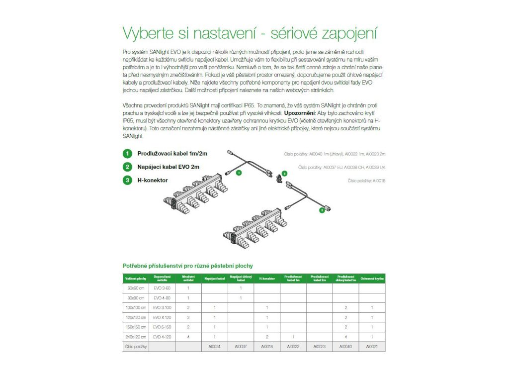 Balení obsahuje pouze 1 svítidlo. Ke každému svítidlu je třeba přikoupit napájecí kabel Sanlight - rovný nebo šikmý. Pro zapojení více svitidel budete potřebovat spojku Sanlight.