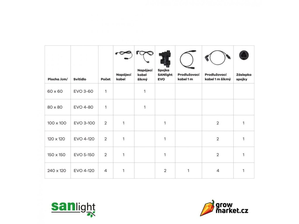 Pro indoor pěstování na ploše 80x80 cm jsou třeba dvě grow LED svítidla SANlight EVO 3-80 s příkonem 200W. Nová generace V1.5 LED s vylepšenou sekundární optikou poskytuje vysokou účinnost a homogenní distribuci světla všem náročným plodinám a rostlinám.