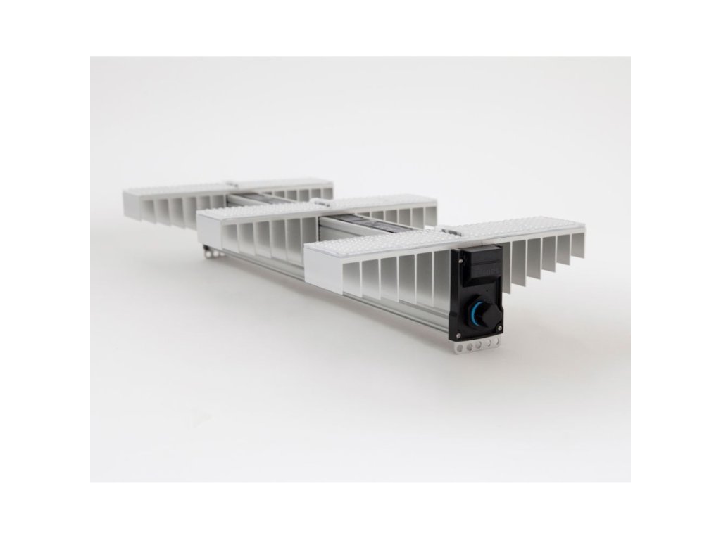 - Právě šikmé naklonění zajistí v kombinaci s naší sekundární optikou homogenní a rozptýlené rozložení světla v pěstebním prostoru.