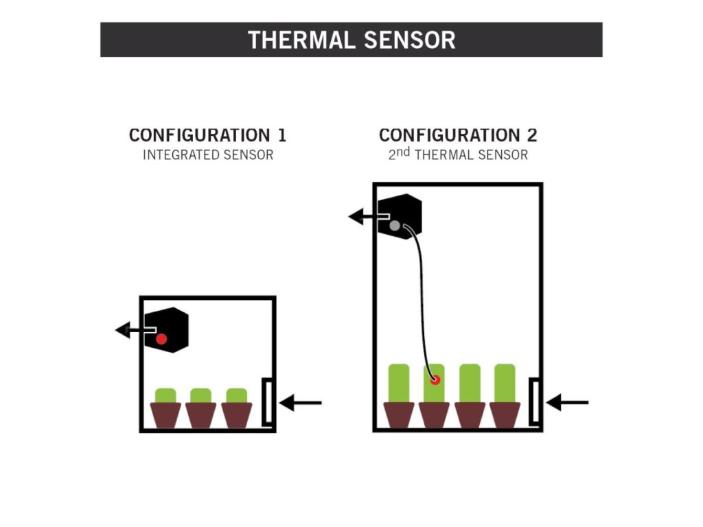 Extraktory jsou navrženy tak, aby se daly připnout k systému průchozích přírub u nových stanů Secret Jardin. Jejich montáž bez použití nářadí trvá méně než 5 sekund. Optimálně je kombinujte s filtry DF16. Tyto produkty zahrnují funkce regulace teploty (T°, max/min rychlost odsávání) a 2 tepelná čidla (vestavěná nebo externí) v závislosti na velikosti pěstebního prostoru.