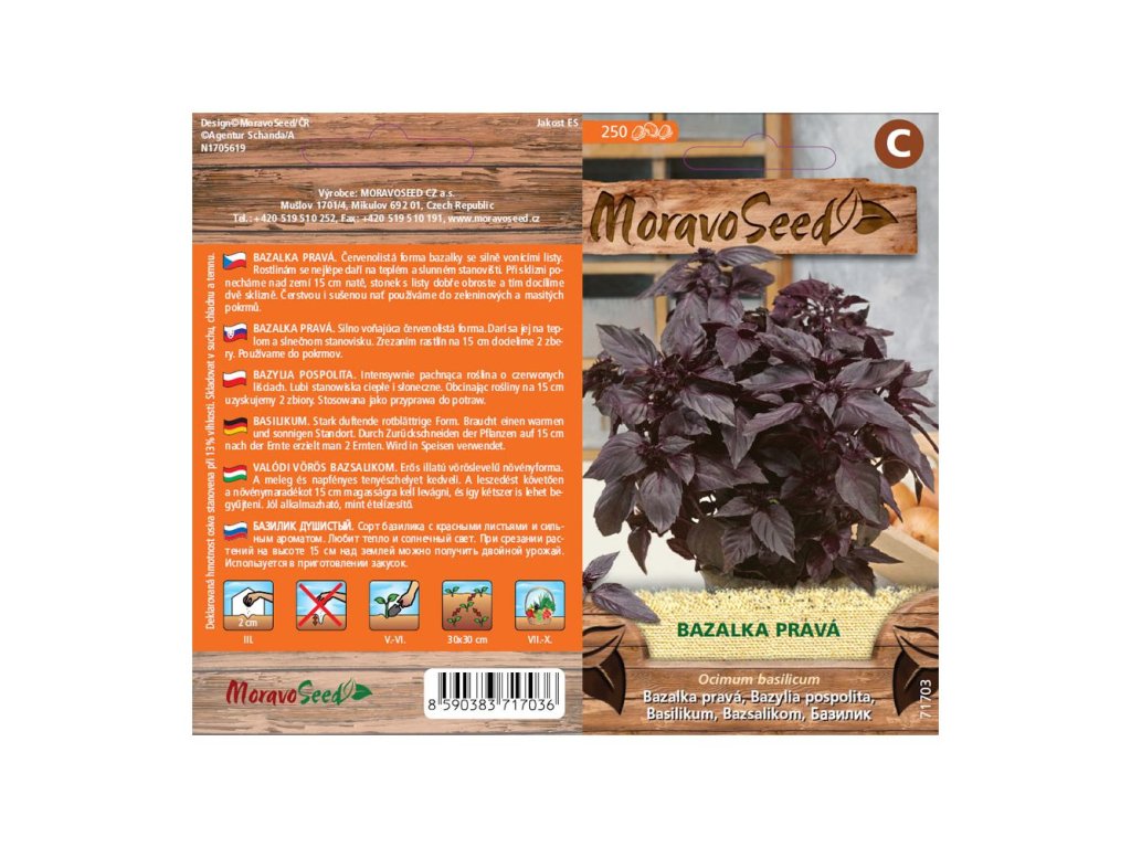 Balení semínek Bazalky pravé červené obsahuje 250 semen. Červenolistá a silně aromatická bazalka s tmavými listy vyžaduje slunné a teplé stanoviště.