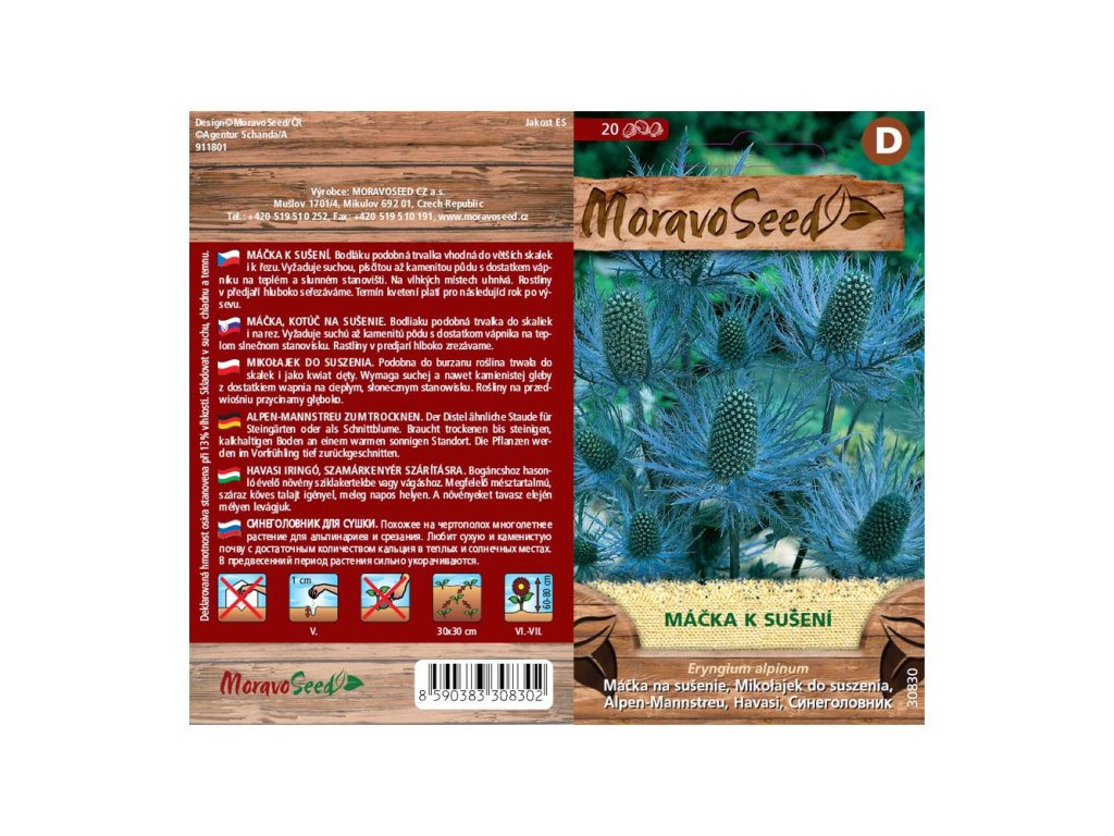 Balení semínek Máčky alpské od Moravo Seed obsahuje 20 semen.