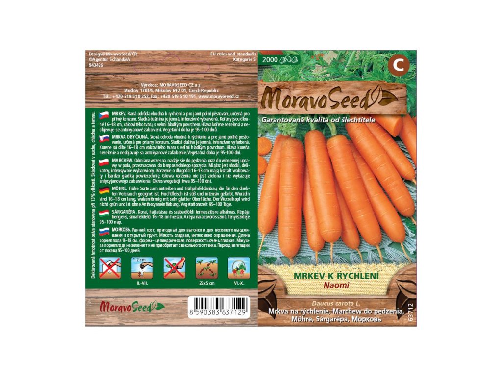 Balení semínek mrkve karotky Marion F1 od Moravo Seed obsahuje 750 semen. Raná hybridní odrůda s vegetační dobou 90-95 dní je vhodná pro celoroční pěstování.