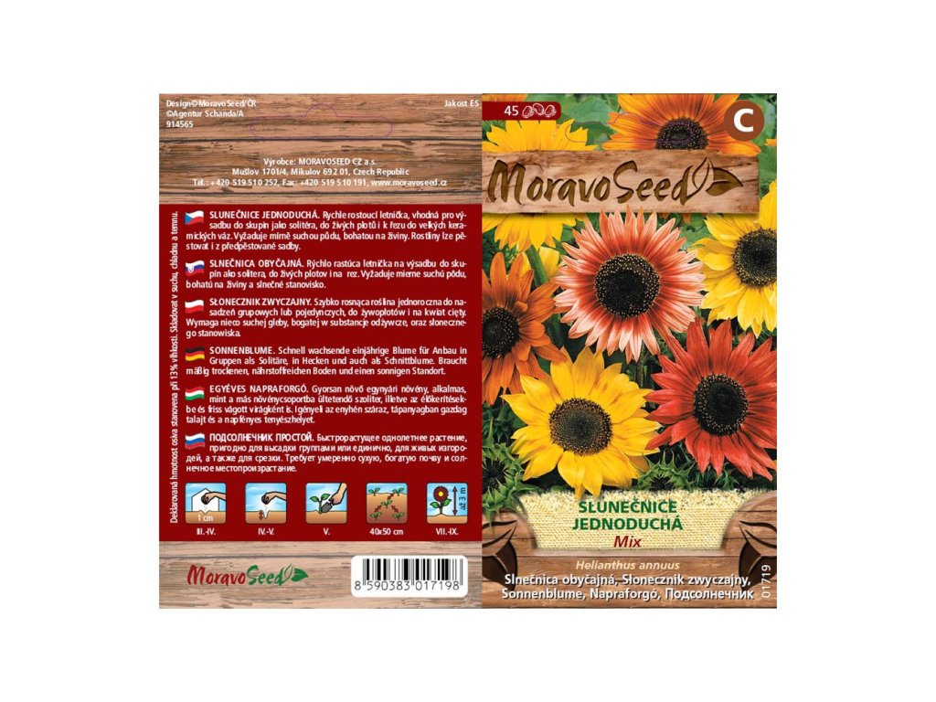Balení semen slunečnice roční jednoduché od Moravo Seed obsahuje 45 semen.