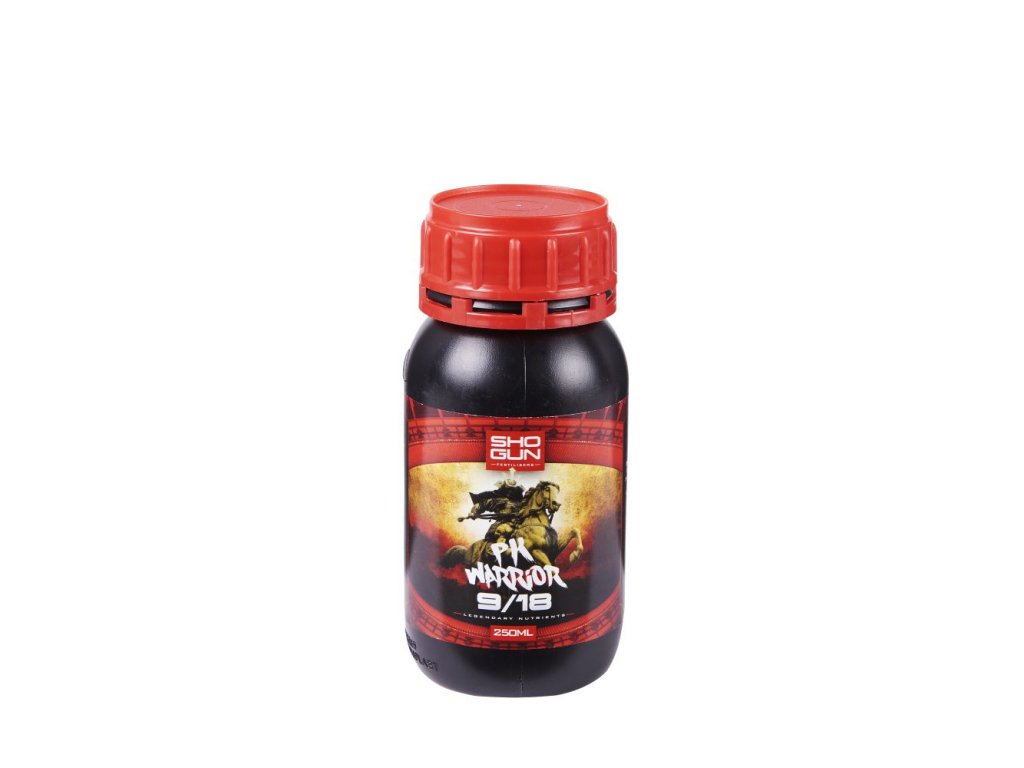 Stimulátor Shogun PK Warrior 9/18 využívá jedinečný poměr fosforu a draslíku, aby předčil všechny ostatní PK přísady! Strategicky navržená receptura razantně podporuje potenciál květenství a zvyšuje výnos. Používá se ve fázi květu.