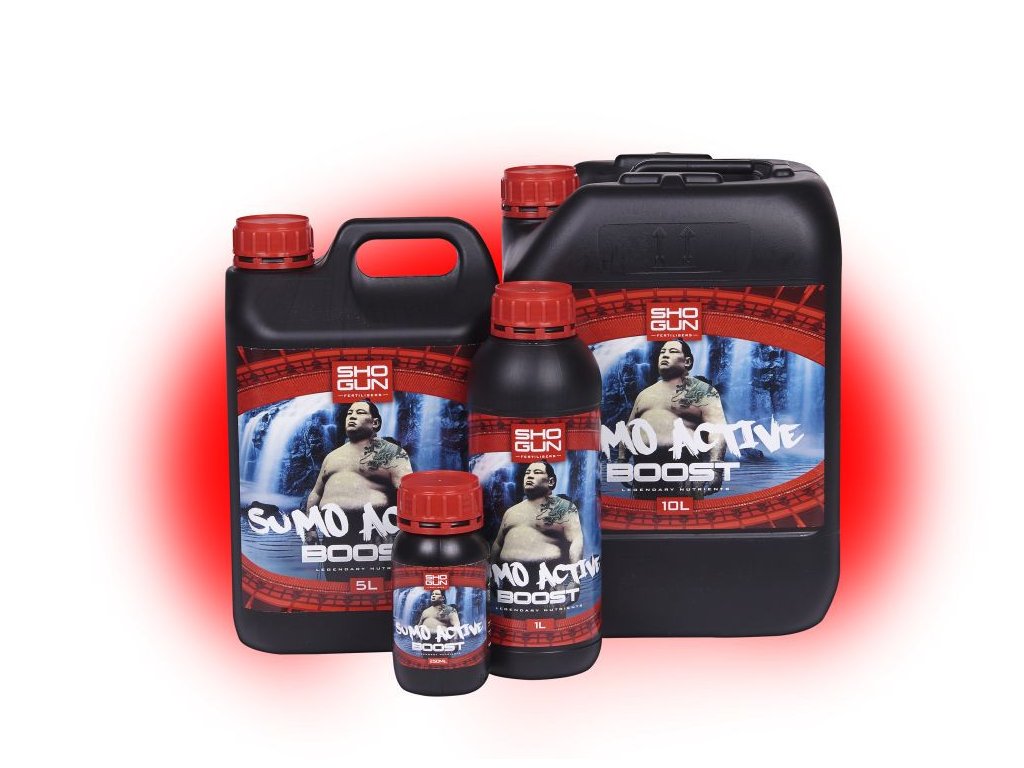 Stimulátor květu Shogun Sumo Active Boost je tekutý emulzní koncentrát složený z přírodní sloučeniny Triacontanol a rostlinného extraktu. Stimuluje příjem primárních živin a fotosyntézu. Zároveň zvyšuje obsah cukrů, proteinů, pryskyřic a terpenů.