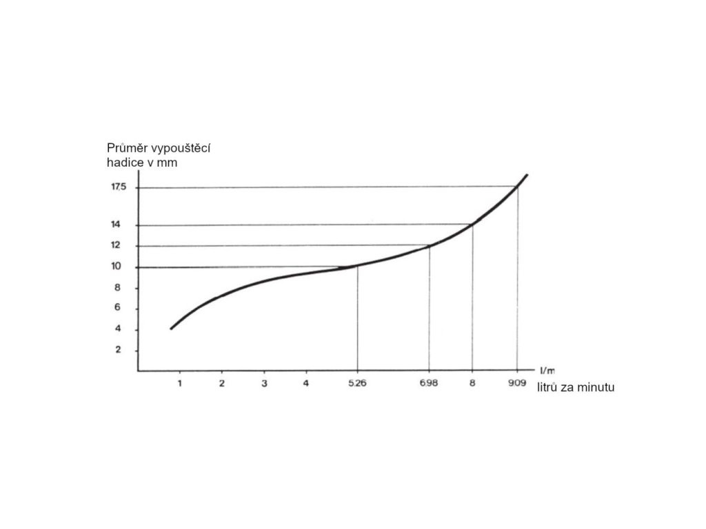 - Vypouštěcí kapacita je závislá na vnitřním průměru redukčního kroužku.