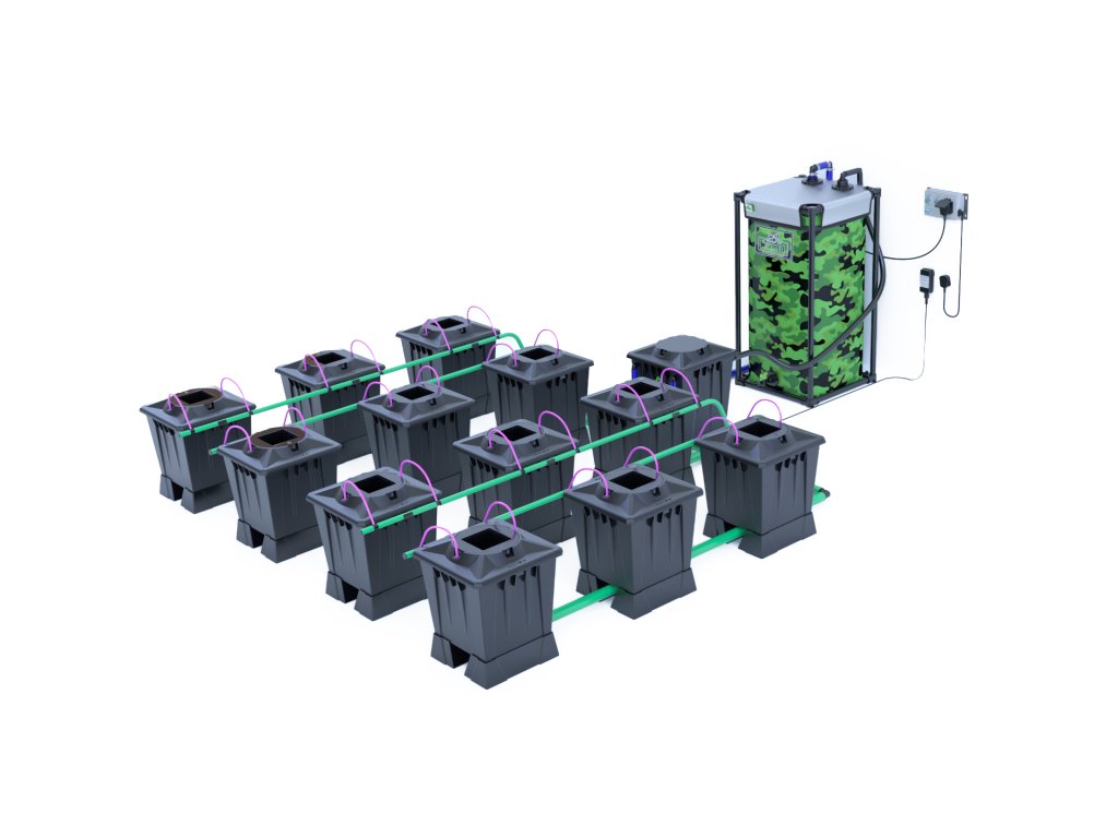 K systému Aero s 15l nádobami je nutné dokúpiť nádrž s objemom najmenej 100 l, systém s 30l kvetináčmi vyžaduje väčšiu nádrž, najmenej s objemom 250 l (odporúčame Flexitank alebo originálnu nádrž Alien Hydroponics).