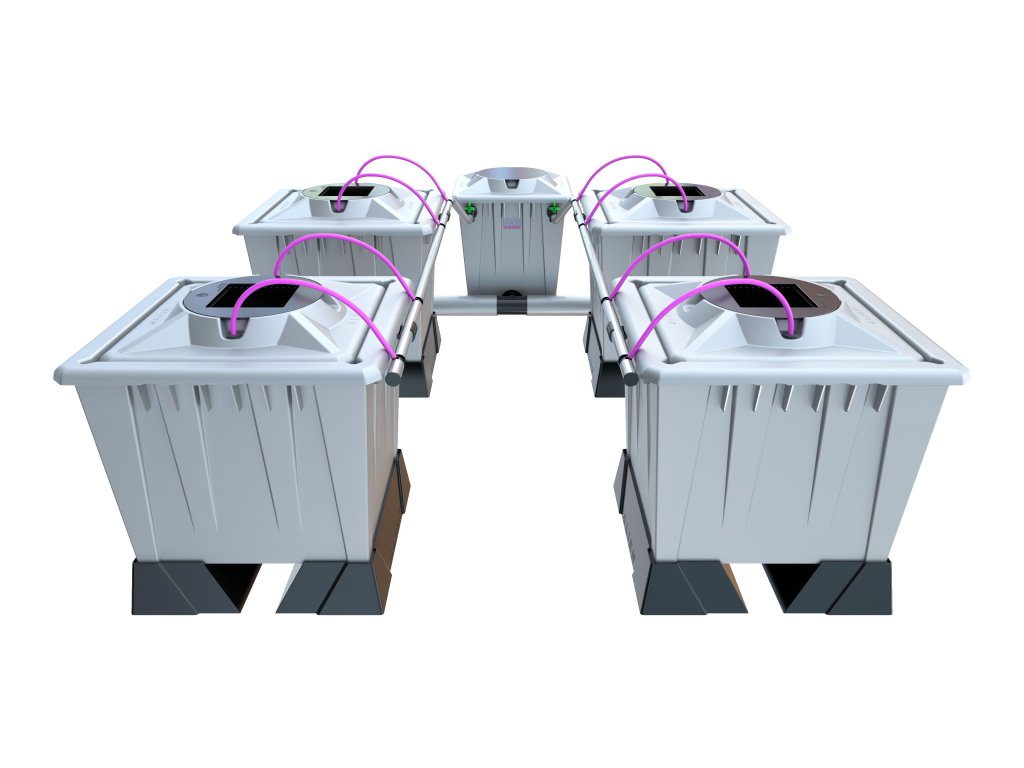 Balenie obsahuje kompletný systém: nádoby, veká, hydroponické košíčky, mikro-postrekovače, podstavce, filtračnú hlavicu, riadiaci systém Rain Brain, čerpadlá, všetky potrebné hadice, tvarovky a montážne príslušenstvo.