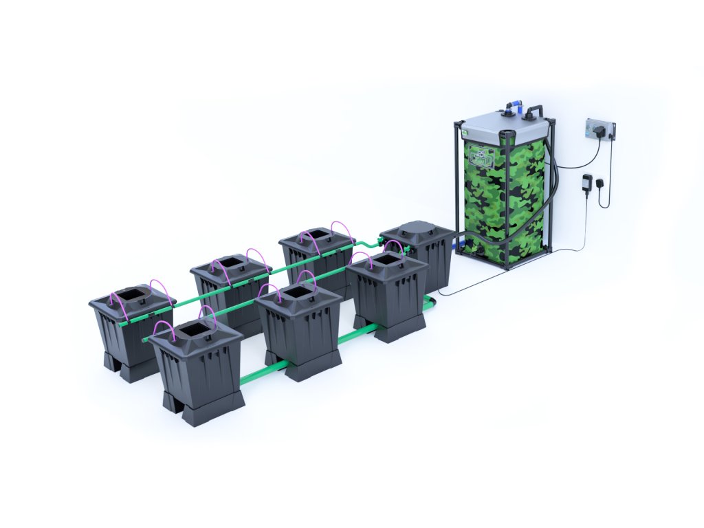 K systému Aero je nutné dokúpiť nádrž s objemom najmenej 100 l (odporúčame Flexitank alebo originálnu nádrž Alien Hydroponics).