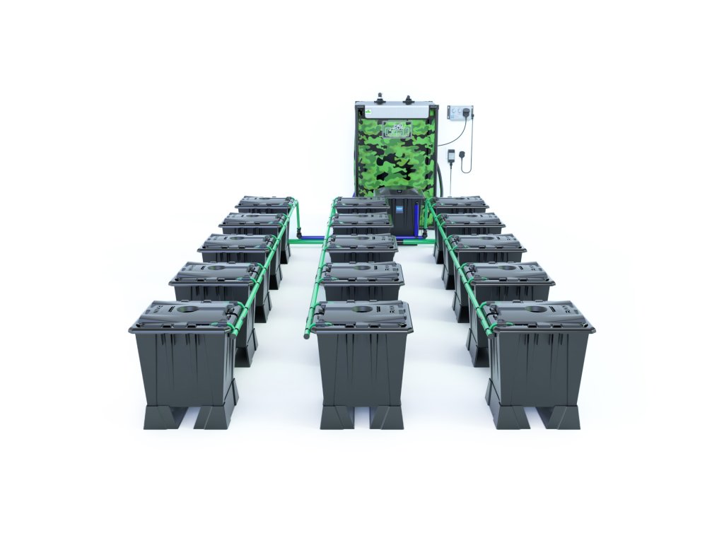 Systém je kompatibilný s akýmkoľvek substrátom – zvládne klasickú pôdu, kokos aj inertné médiá, ako je keramzit. Nastavenie je variabilné; systém môže fungovať ako RTW (run-to-waste: použitý roztok je odvádzaný do odpadu) alebo ako recirkulačný systém (roztok sa vracia späť do nádrže). Zálievku riadi jednotka Rain Brain, ktorá ovláda zavlažovacie aj vypúšťacie čerpadlo. Intervaly je možné nastaviť od 30 minút do 7 dní s dĺžkou trvania zálievky od 15 sekúnd do 5 minút.