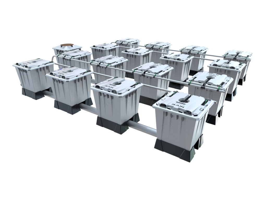 Rovnomerná zálievka zaistí distribúciu živín ku všetkým koreňom a rovnomerné vysychanie substrátu. Systém je univerzálny a vhodný pre akýkoľvek substrát – zvládne klasickú pôdu, kokos aj inertné médiá ako keramzit. Je možné ho nastaviť ako RTW (run-to-waste) alebo ako recirkulačný systém. O riadenie sa stará jednotka Rain Brain, ktorá ovláda čerpadlá a umožňuje nastavenie intervalov zálievky od 30 minút po 7 dní.