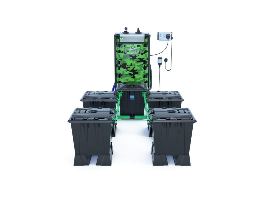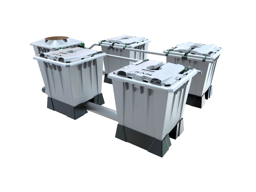 Variant Alien Hydroponics Rain 4Pot Silver 15L obsahuje štyri kvetináče. Systém je dostupný v dvoch vyhotoveniach (Black a PRO Silver) a s dvoma veľkosťami nádob (15 l a 30 l).
