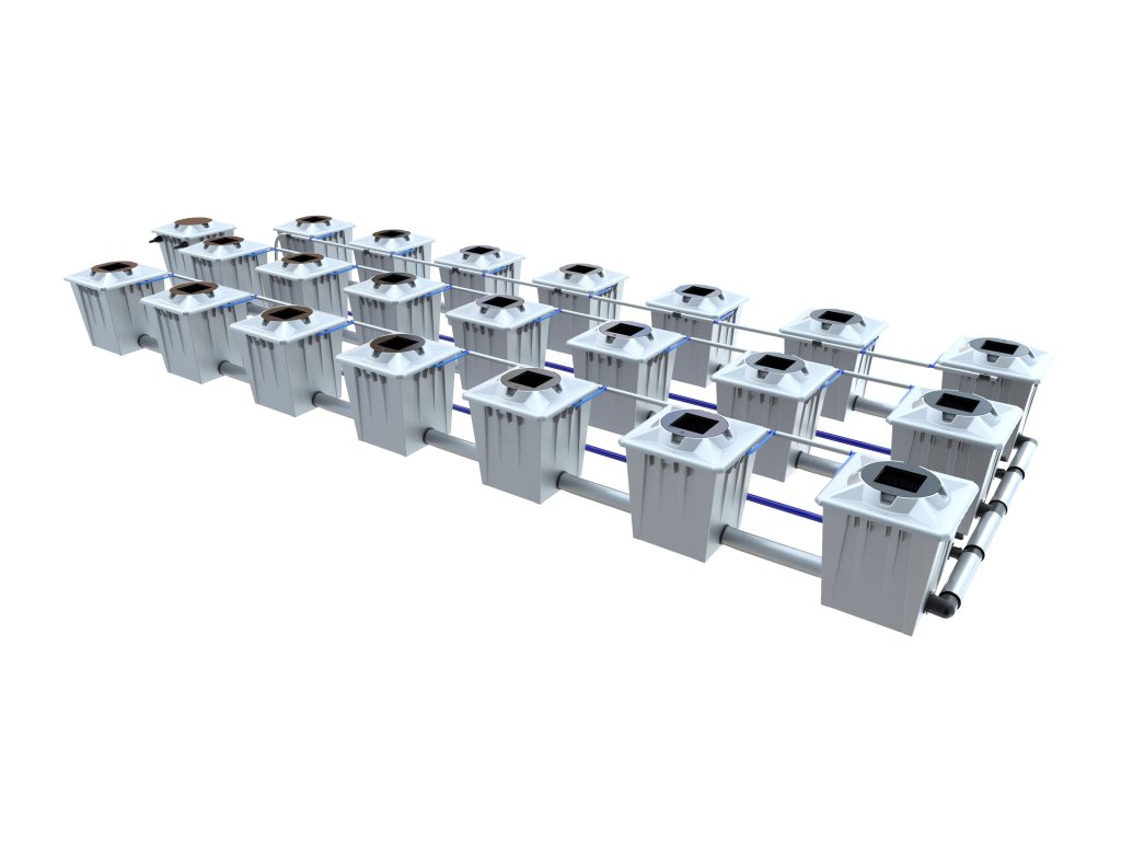 Recirkulačný hydroponický systém Alien Hydroponics RDWC pre 21 rastlín zaisťuje maximálne okysličenie koreňov a zrýchlenie rastu. Vďaka neustálej cirkulácii živného roztoku udržiava stabilné hodnoty pH aj EC v celom pestovateľskom priestore. Systém je dostupný vo variantoch Black a Silver s voľbou veľkosti kvetináčov.