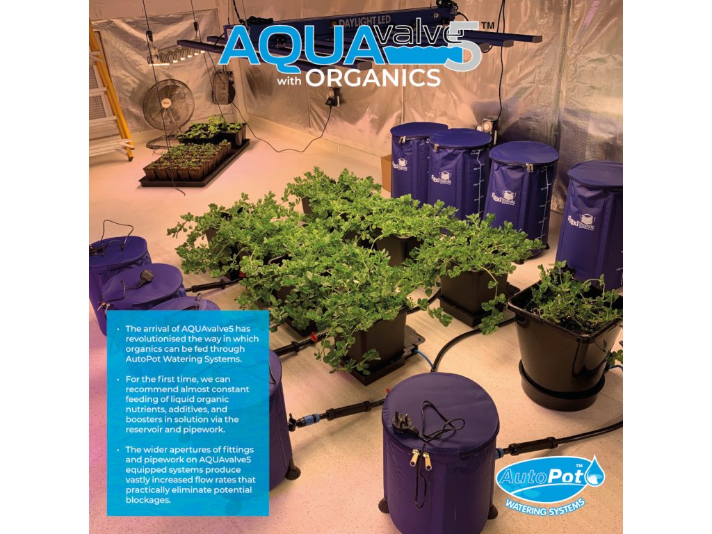 Samozavlažovacie systémy Autopot (Easy2grow, 1Pot, 1Pot XL, zásobníkové systémy, AQUAbox Straight/Spyder) budúpo vypredaní zásob štandardne dodávané s AQUAvalve5 a zavlažovacím príslušenstvom s priemerom 9 mm, 9-16 mm a 16 mm.