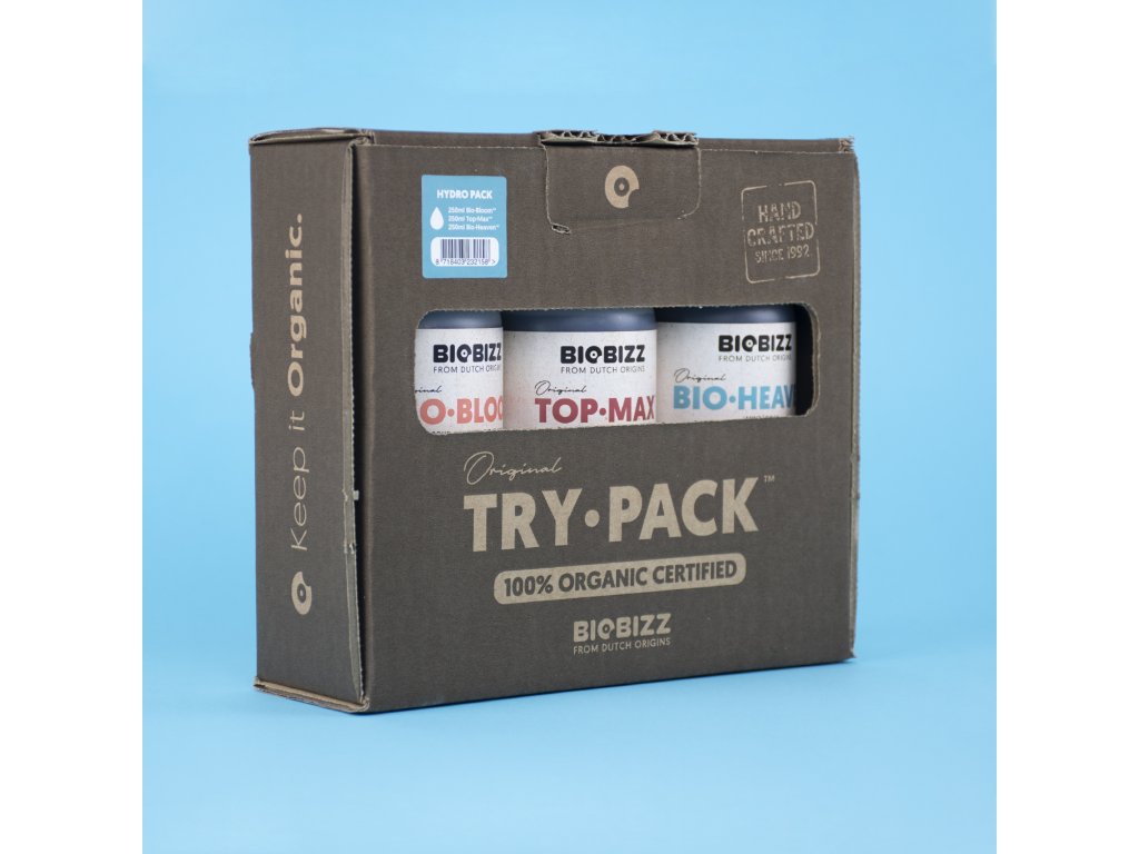 BioBizz Try Pack Hydro je cenovo výhodná sada organických hnojív, ktorá zabezpečuje dostatočný rozvoj koreňov, silný rast a ochranu počas celého vegetačného cyklu. Vďaka stimulátoru kvetov sa môžete spoľahnúť na bohaté a voňavé kvety a plody.