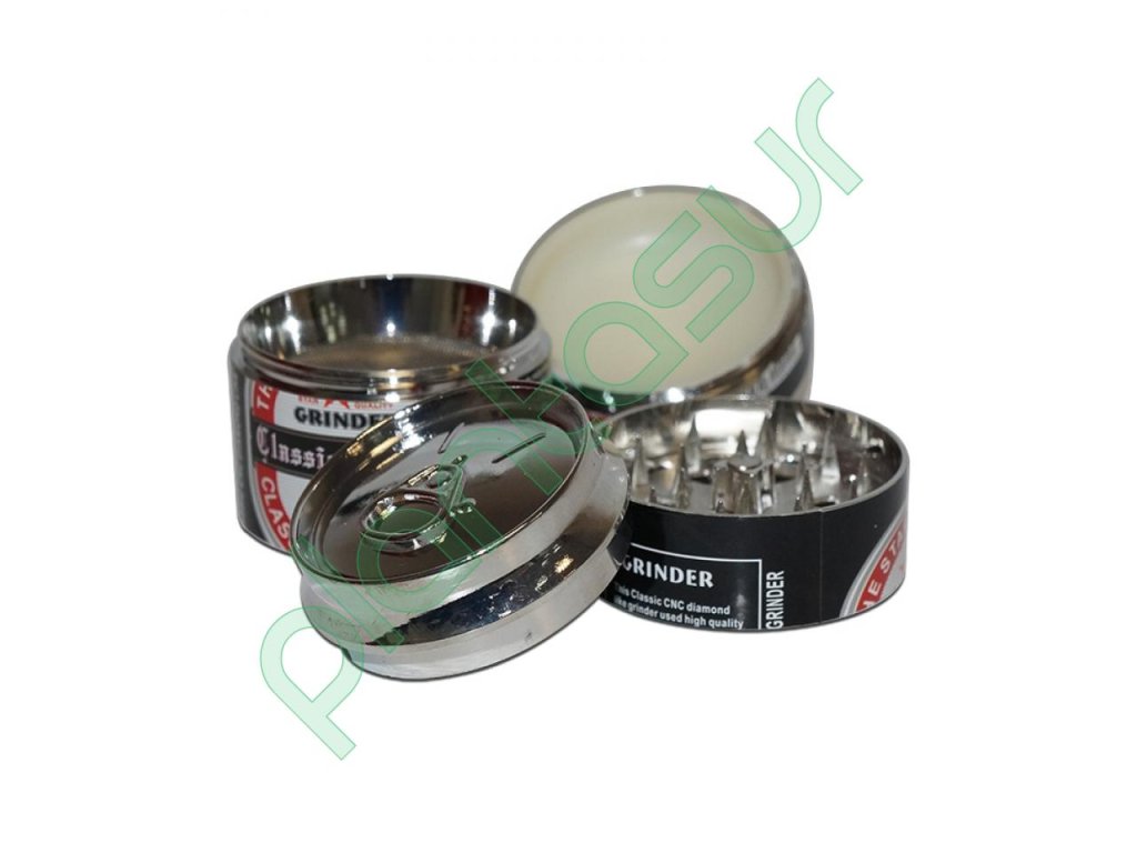 Štvordielna drvička v tvare plechovky s pivom s priemerom 50 mm. Tento nástroj zaujme svojím originálnym dizajnom a praktickým vyhotovením.