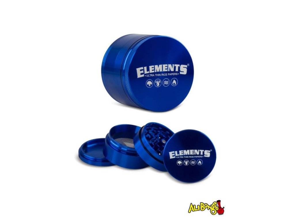 Štvordielna kovová drvička Elements, 61 mm Modrá