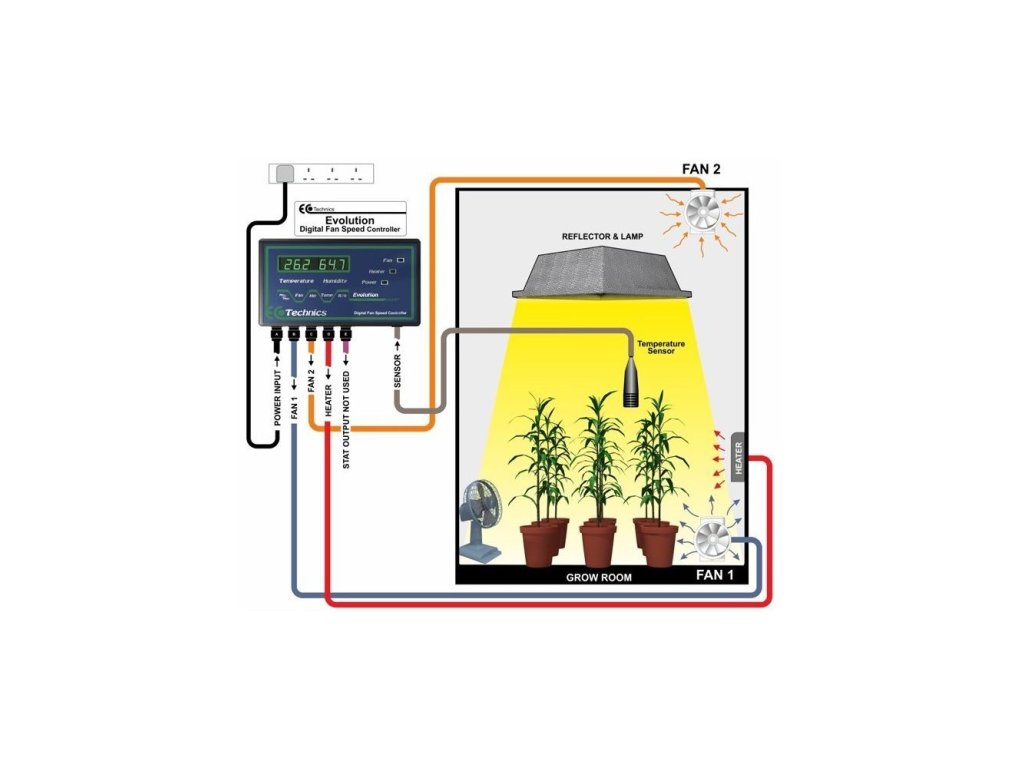 Na čo najefektívnejšiu kontrolu pestovateľského prostredia odporúčame používať regulátor otáčok Evolution v kombinácii s digitálnym regulátorom otáčok ventilátora. Pokyny a informácie o fungovaní regulátora nájdete v priložených súboroch alebo videách.