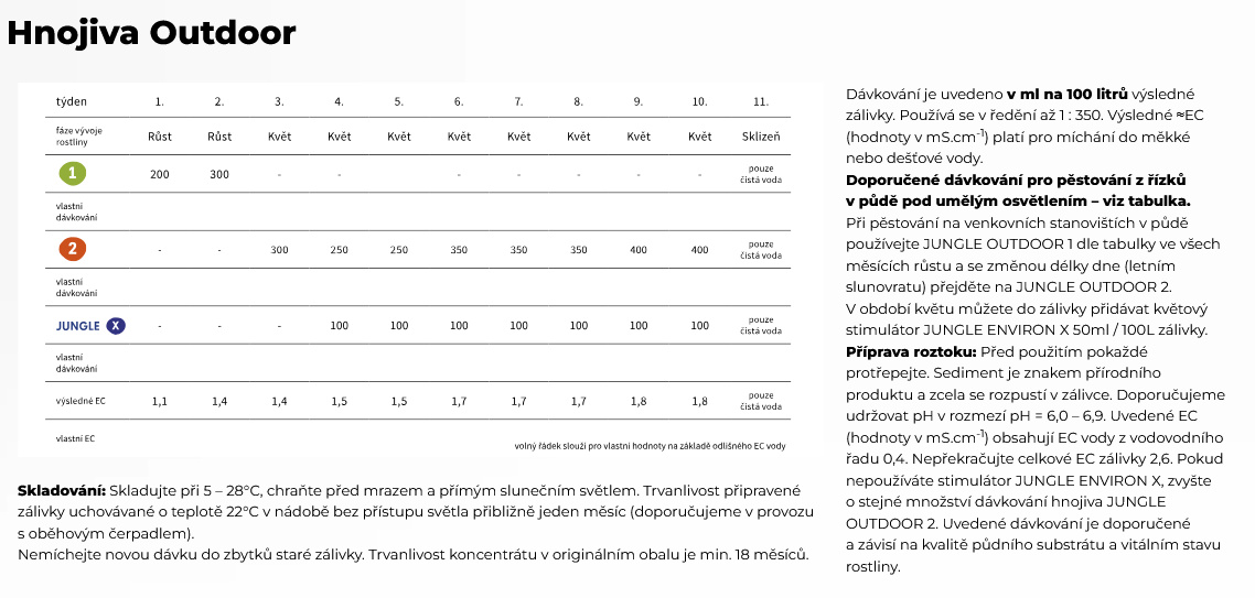 - Outdoor 1 + Outdoor 2 poskytujú rastlinám komplexnú výživu počas celého vegetačného cyklu