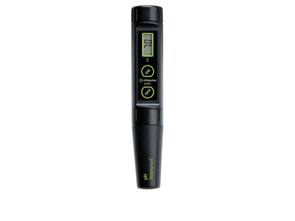 Elektronický pH meter WP Tester Milwaukee pH51 je určený pre akvaristov alebo pestovateľov, ktorí potrebujú pravidelne a presne merať pH živného roztoku. Medzi hlavné výhody tohto praktického pH-metra s jednoriadkovým displejom patrí vymeniteľná sonda, vynikajúca životnosť batérie a nenáročná veľkosť len 165 × 30 × 30 mm. Vreckový pH tester Milwaukee pH51 je vodotesný a pripravený na meranie aj vo veľmi vlhkých podmienkach.