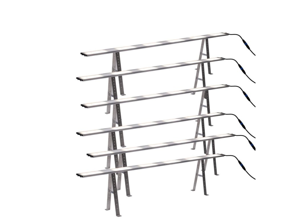 Súprava šiestich modulov STIXX 6-150 poskytuje najvyššiu hustotu osvetlenia pre veľké pestovateľské stany s rozmermi 150x300 cm. Zlepšuje prienik svetla hlboko do porastu, umožňuje presné riadenie morfológie rastlín a zvyšuje výnosy v nižších poschodiach.