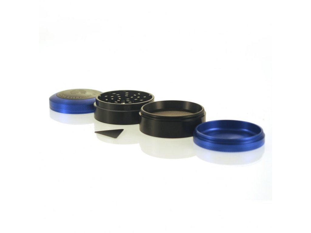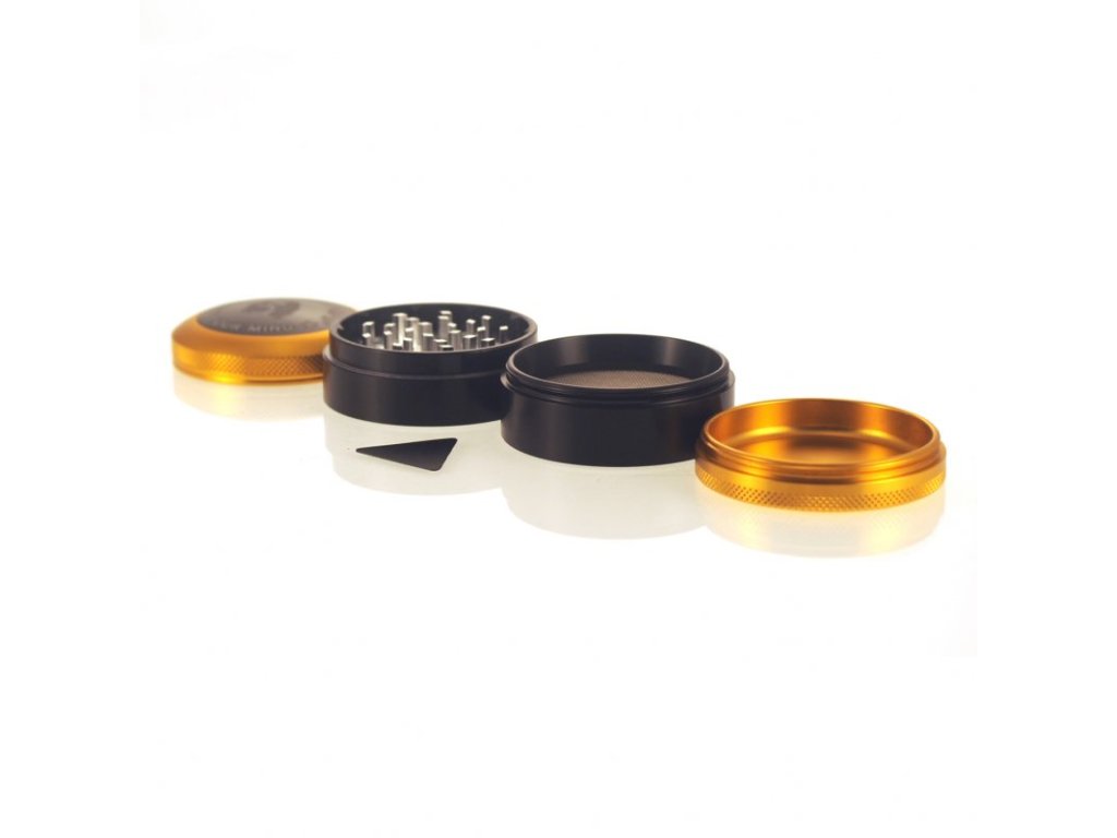 Štvordielna drvička Super Puff s priemerom 63 mm s magnetickým viečkom a škrabkou. Disponuje zubami v tvare diamantu pre rovnomerné drvenie a nylonovým krúžkom pre plynulý chod.