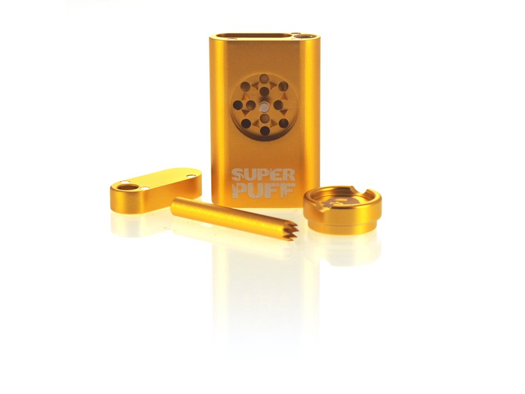 Diskrétna fajčiarska sada Super Puff v dizajne zapaľovača Zippo obsahuje integrovanú drvičku, šlukovku a úložný priestor. Vďaka magnetickému viečku a kompaktným rozmerom je ideálna na skryté uchovanie a prípravu bylín.