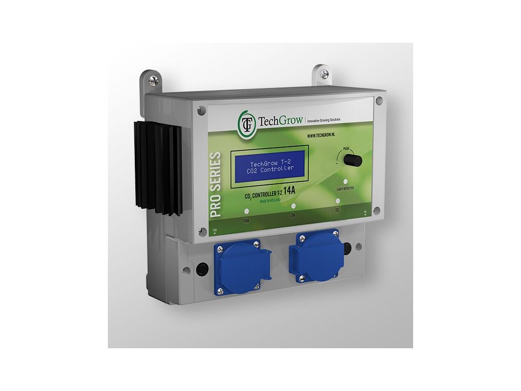 TechGrow T-2 Pro CO2 Controller je komplexná riadiaca jednotka na reguláciu CO2, teploty a vlhkosti v pestovateľských priestoroch. Umožňuje presné dávkovanie CO2 počas dňa a odsávanie prebytkov v noci, pričom zvládne ovládať ventilátory až do 5000 m3/h. Senzory nie sú súčasťou balenia a je nutné ich dokúpiť samostatne.
