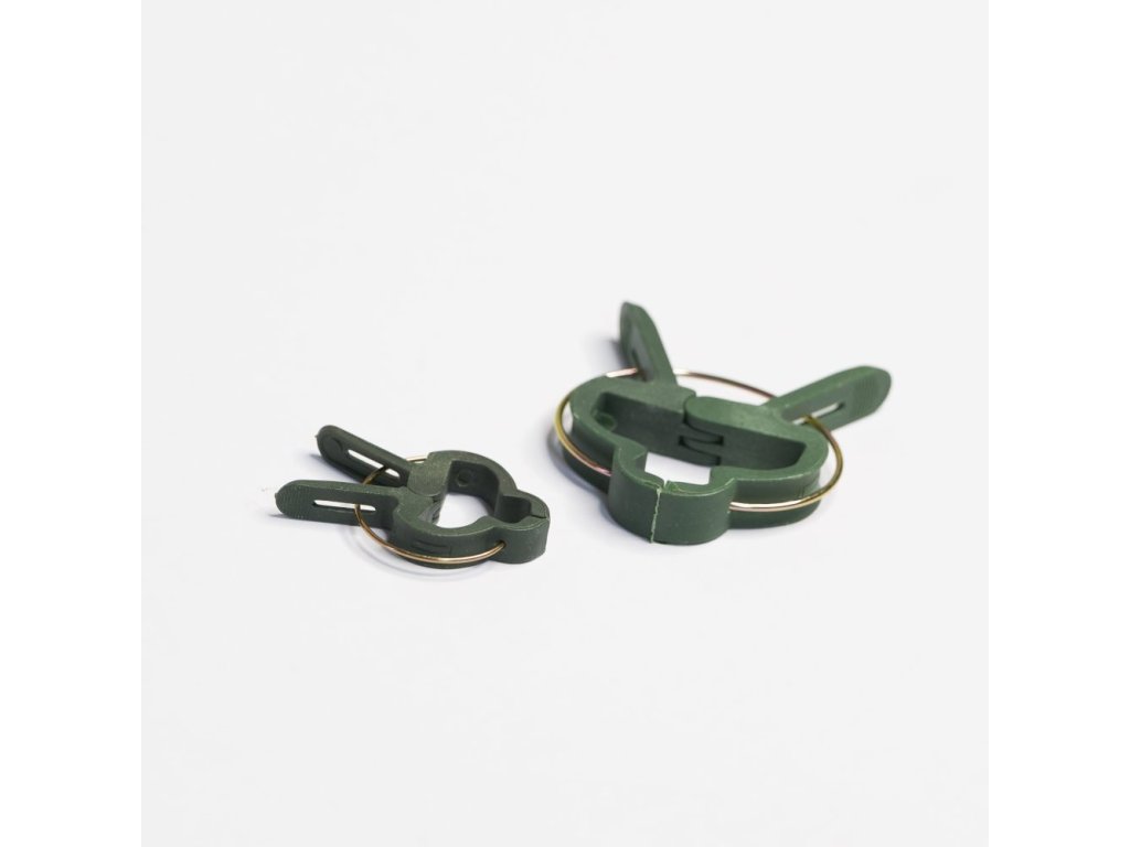 Jednoduché klipsové skřipce či spony na uchycení a ohýbání popínavých rostlin, rajčat, okurek, vinné révy apod.