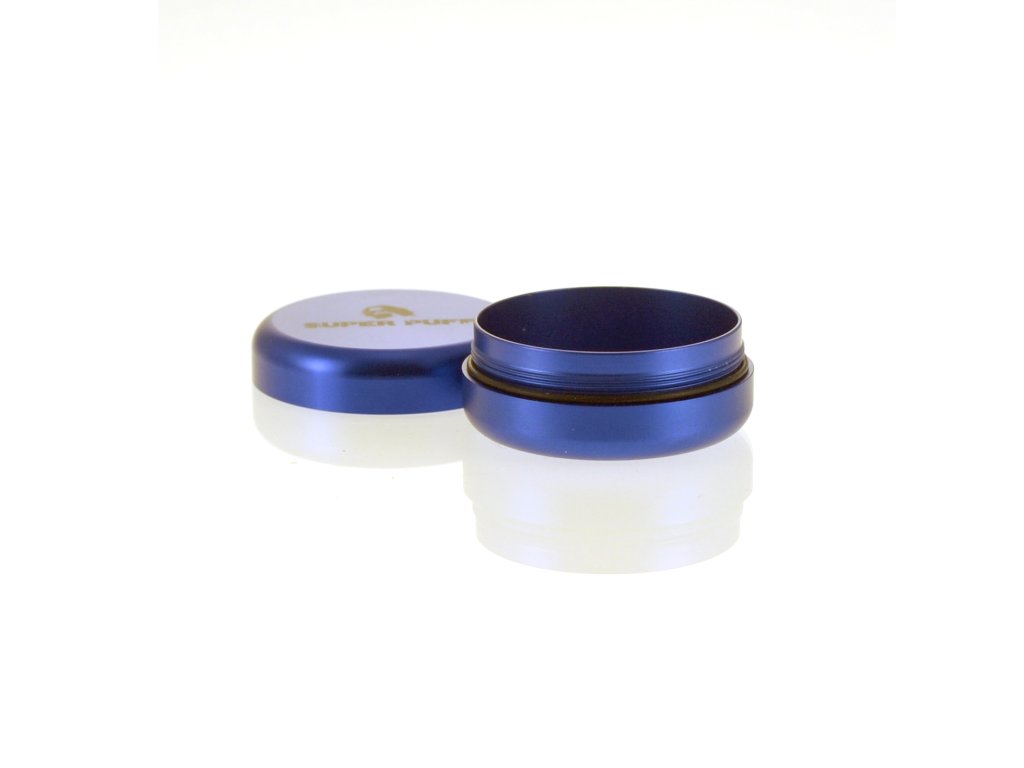 Hliníková krabička Super Puff o objemu 35 ml a průměru 50 mm. Ideální pro uskladnění drobností, dostupná v modré nebo zlaté barvě. Kvalitní provedení od dceřiné značky Super Strains Seeds.