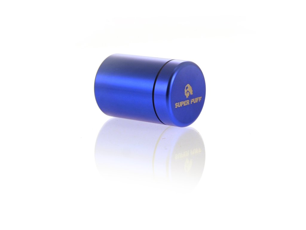 Hliníková krabička o objemu 72 ml a průměru 4,5 cm od značky Super Puff, dceřiné společnosti Super Strains Seeds. Nabízí kvalitní zpracování a kompaktní rozměry v modrém či zlatém provedení.