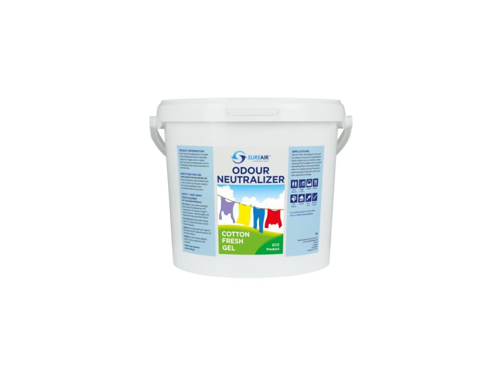 Nežádoucí vůně dokážou znepříjemnit obytné i pracovní prostory, soukromá i veřejná místa. Neutralizér pachu Sure Air Gel Cotton Fresh 1 l využívá intenzivní sílu esenciálních olejů přírodního původu k naprosté likvidaci nepříjemného zápachu organického i anorganického původu.