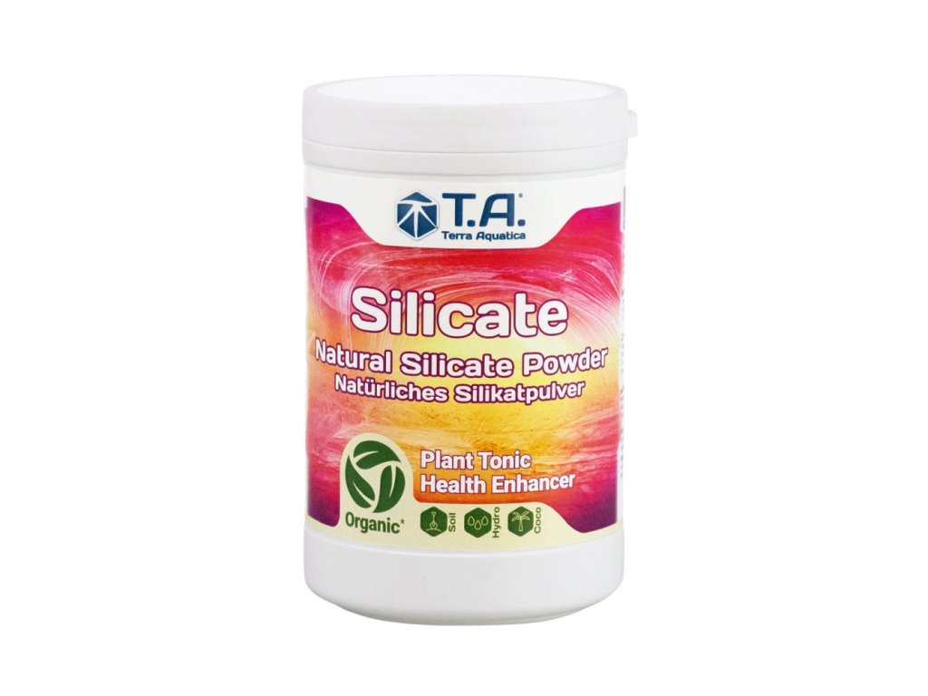 Křemičitany zvyšují přirozenou imunitu a odolnost rostlin proti chorobám a škůdcům. Silicate dále vylepšuje výměnu kationtů v roztoku a tak stimuluje dostupnost minerálů. Stabilizuje pH i EC, chrání před toxiny, posiluje růst i květ. Terra Aquatica Silicate (GHE Mineral Magic) 1 l obsahuje kromě křemíku dalších více než 60 minerálů nebo přírodní koloidy. Oproti původní verzi je lépe rozpustný, obsahuje více křemičitanu i pH stabilizujících uhličitanů.
