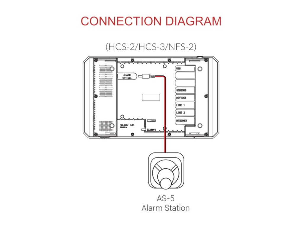 AS-5 může být napájen ze suché kontaktní stanice DSD-1 a připojen k CDA-1. Po připojení s CDA-1 lze AS-5 propojit s kanálem čidel CO2 AL-1 nebo AL-2, případně propojit s oběma kanály čidel pro úplnou redundanci.