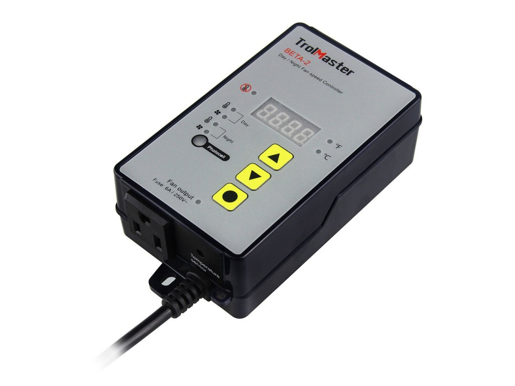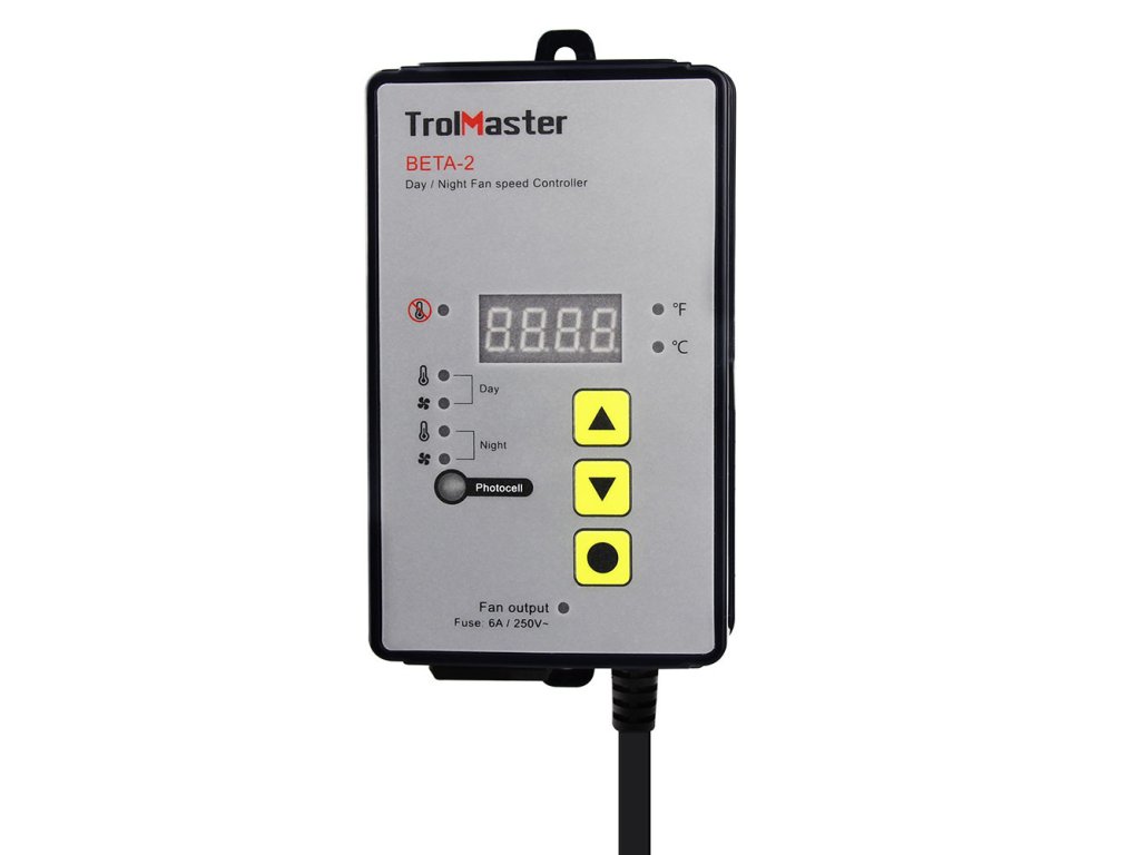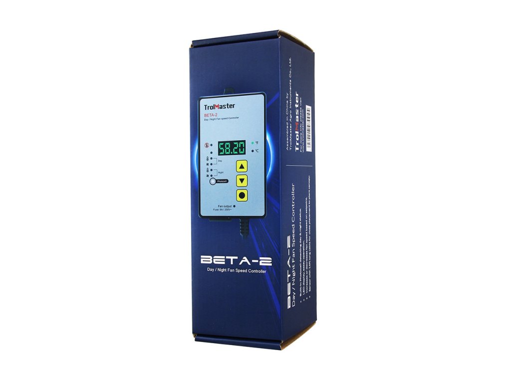 Triakový regulátor Trolmaster BETA-2 řídí chod ventilátorů zvýšením nebo snížením otáček podle aktuální teploty a tak napomáhá k dokonalým podmínkám v pěstebním prostoru. Umožňuje nastavit různé režimy pro den a noc.