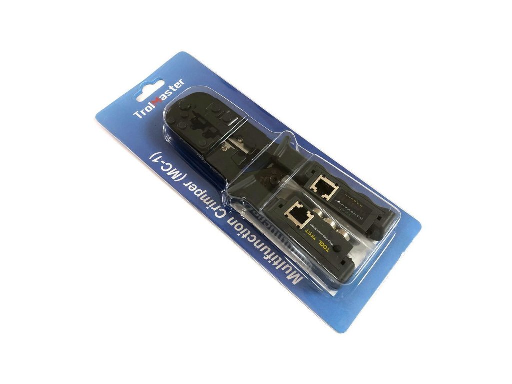 Multifunkční krimpovací kleště a zkoušečka kabelů Trolmaster MC-1 jsou vysoce kvalitní, univerzální krimpovací kleště, zkoušečka síťových kabelů, odizolovač vodičů a řezačka. Síťoví profesionálové mohou snadno ukončovat a testovat síťové kabely na spojitost vedení, otevřené konfigurace, zkraty a chybná zapojení. Tento krimpovací nástroj a tester kabelů, který je vynikajícím doplňkem každé sady síťového nářadí, dokáže rychle zkontrolovat zakončení předtím, než pracovníci IT nainstalují přizpůsobený kabel. Umožňuje také rychlou identifikaci a opravu problémů s připojením ve stávající instalaci.
