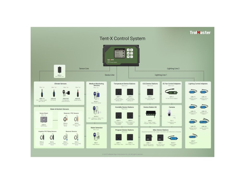 TrolMaster Tent-X (TCS-1) je nejmodernější profesionální modulární systém řízení prostředí a zavlažování určený pro jednozónové pěstební stany.