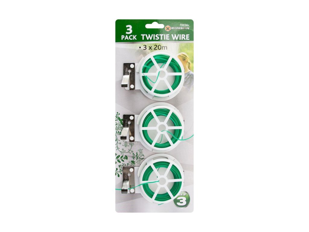 Zahradní vázací drát ideální pro pěstitele a pro použití v domácnosti. V balení najdete tři cívky s návinem 20 m. Zavěste cívky na háčky, abyste zajistili snadný přístup pro použití.