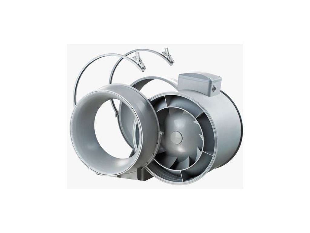 Lehký plastový větrák Vents TTu umožňuje horizontální i vertikální instalaci. TT ventilátor disponuje teplotním čidlem a integrovaným elektronickým regulátorem otáček. Axiální ventilátor s maximálním průtokem vzduchu 520 m3/h je určen pro kruhová potrubí o průměru 150 mm.